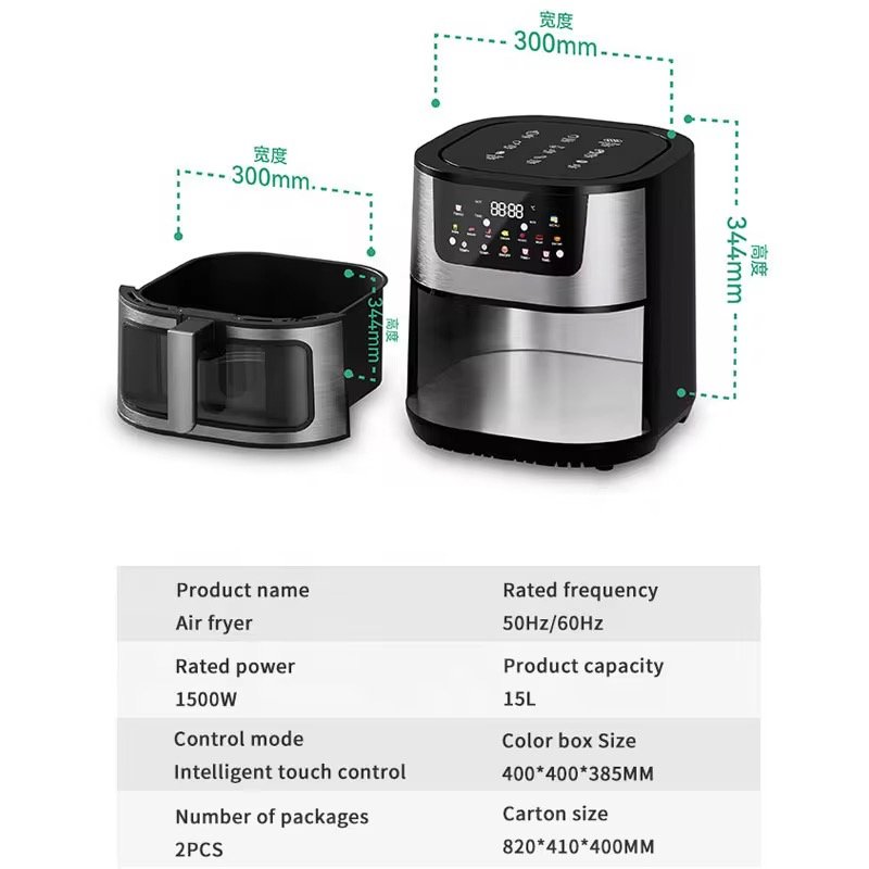 رتقِ بتجربة الطبخ اليومية مع ايرفراير سعة 15 لتر بتكنولوجيا الهواء الساخن، الجهاز المثالي للعائلات الكبيرة والوجبات المتعددة. تصميم عصري بواجهة ديجيتال ذكية تمنحك تحكمًا كاملًا في الوقت والحرارة مع برامج جاهزة لتسهيل كل وصفة.