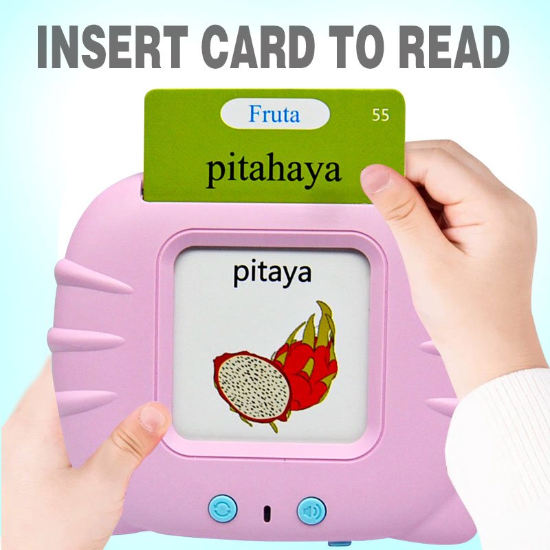 تعليم ناطق تفاعلي: بمجرد إدخال البطاقة، ينطق الجهاز اسم الكلمة ليساعد الطفل على التعرف عليها بطريقة مسموعة وواضحة.