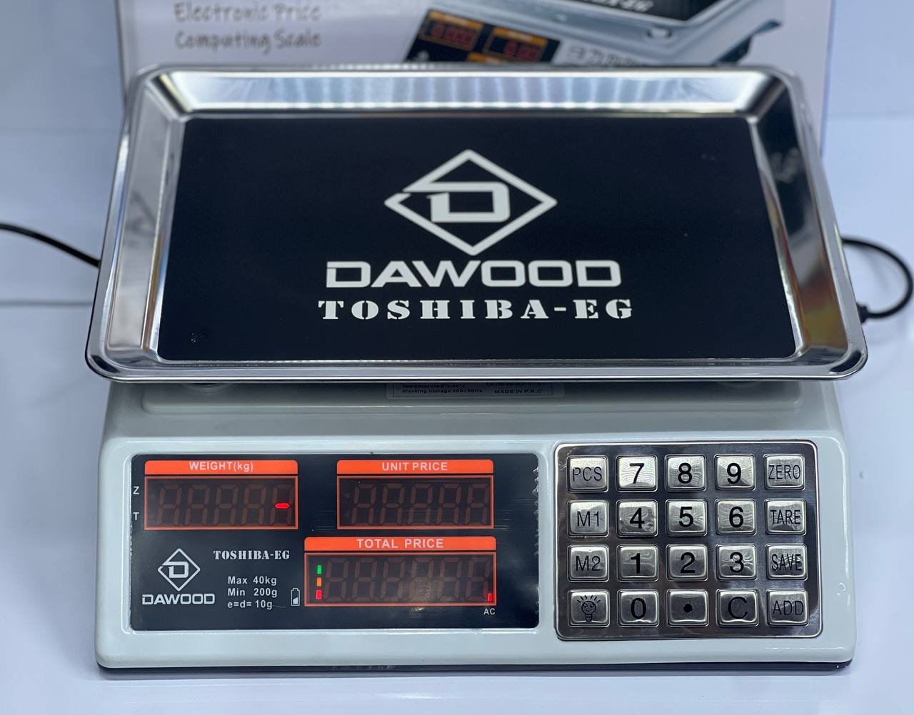 الشاشة: ثلاث شاشات LED واضحة لعرض الوزن، السعر، والإجمالي